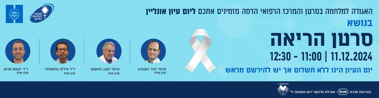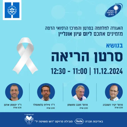 האגודה למלחמה בסרטן והמרכז הרפואי הדסה מזמינים אתכם ליום עיון אונליין בנושא סרטן הריאה